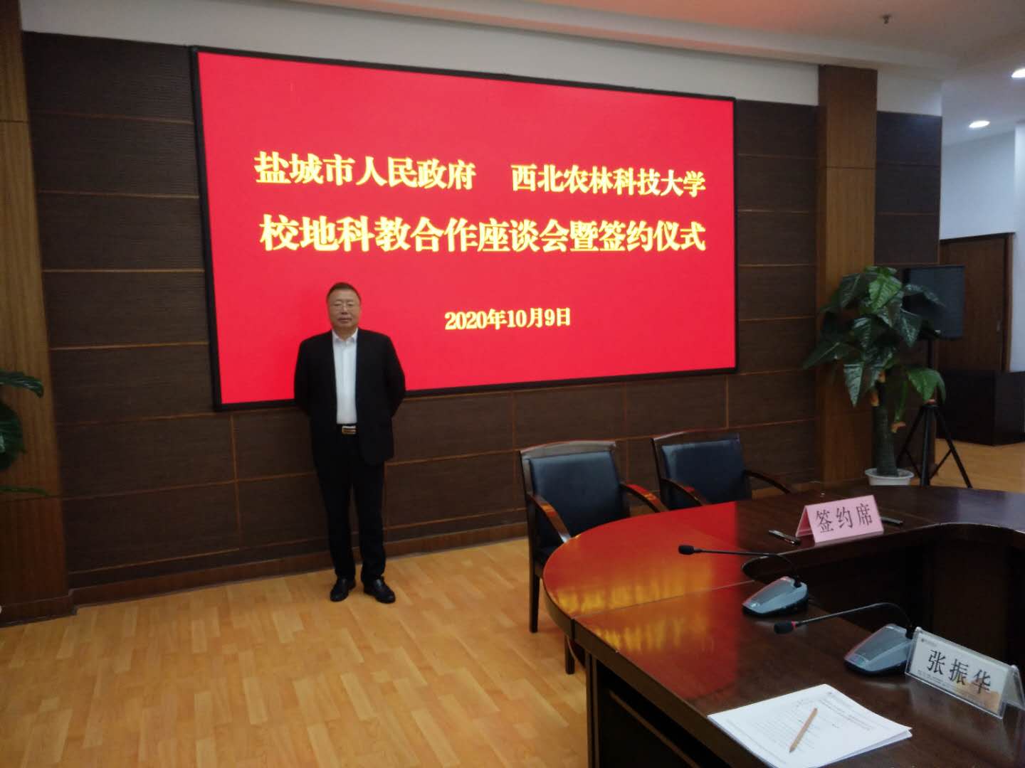 簽約活動(dòng)由西北農(nóng)科技大學(xué)副校長(zhǎng)錢(qián)永華主持。鹽城市委書(shū)記戴源同志代表鹽城市委市政府首先為簽約活動(dòng)發(fā)表講話(huà)。他表示,在實(shí)現(xiàn)我國(guó)全面建成小康社會(huì)目標(biāo)和開(kāi)啟全面建設(shè)社會(huì)主義現(xiàn)代化國(guó)家新征程之際,雙方舉行校地深度合作的簽約儀式,將為鹽城市和西北農(nóng)科技大學(xué)進(jìn)一步展開(kāi)多層次、多形式、多領(lǐng)域的校地合作,構(gòu)建全面戰(zhàn)略合作關(guān)系和長(zhǎng)效合作機(jī)制,促進(jìn)未來(lái)鹽城市農(nóng)業(yè)龍頭企業(yè)的創(chuàng)新發(fā)展和地方經(jīng)濟(jì)社會(huì)的高質(zhì)量發(fā)展提供了新的途徑和活力。今后雙方將優(yōu)勢(shì)互補(bǔ)、資源共享,協(xié)同促進(jìn)校地和校企創(chuàng)新發(fā)展。西北農(nóng)科技大學(xué)校長(zhǎng)吳普特在致辭中表示,學(xué)校與鹽城市和鹽城企業(yè)開(kāi)展合作,既符合社會(huì)和企業(yè)對(duì)人才的需求,為企業(yè)提供了充足的人才供給,同時(shí)也為學(xué)校培養(yǎng)人才提供了可靠的創(chuàng)新實(shí)踐平臺(tái),雙方合作簽約必將促進(jìn)學(xué)校教育事業(yè)持續(xù)發(fā)展。