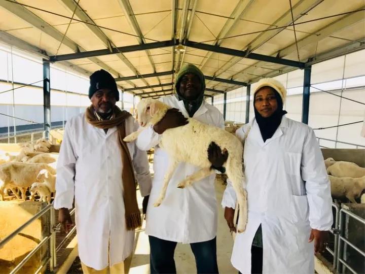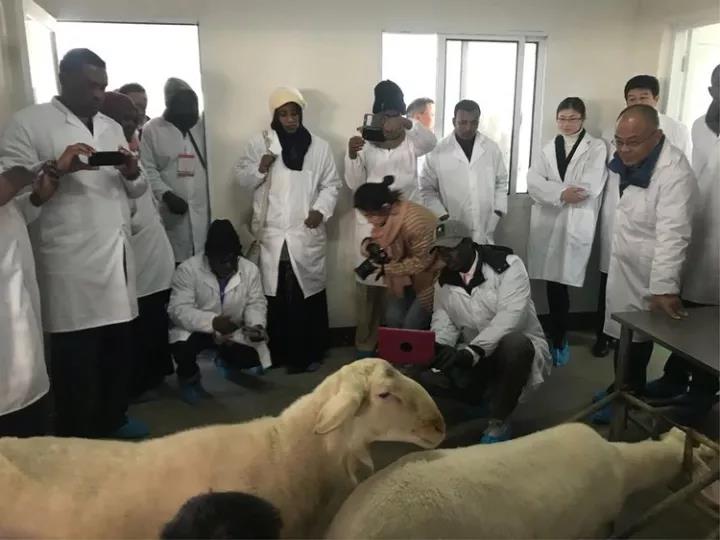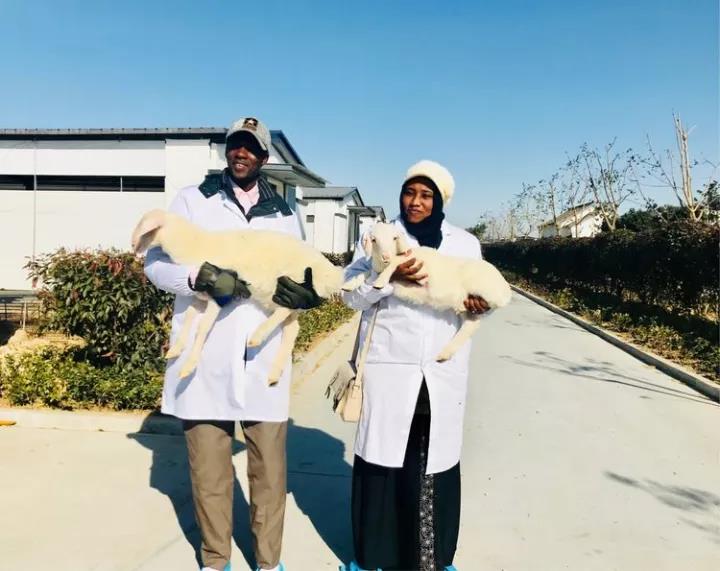 蘇丹共和國(guó)的大學(xué)教授們對(duì)乾寶牧業(yè)養(yǎng)殖的湖羊非常親切,非常激動(dòng),并提出抱著照相留念。
