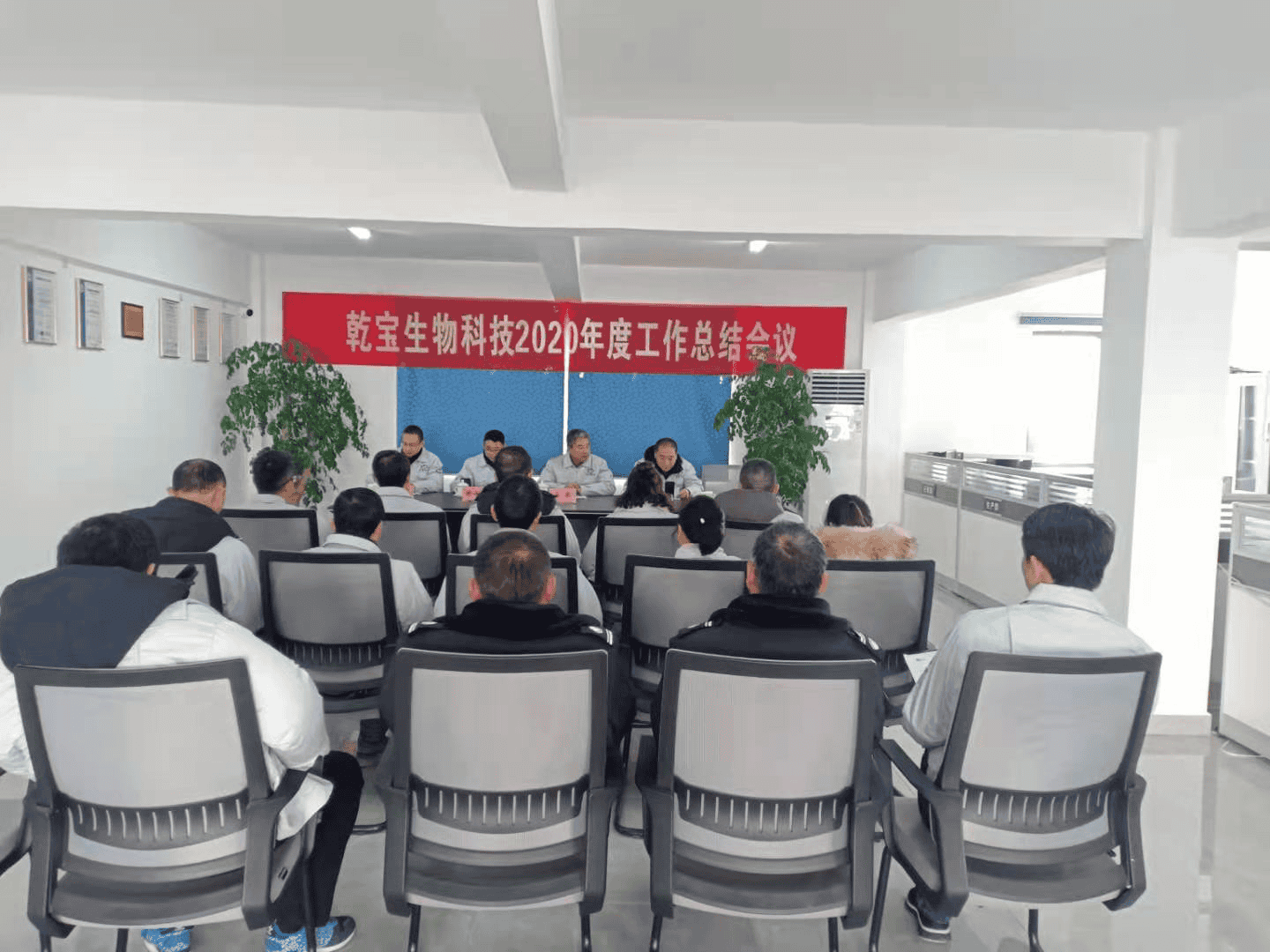2021年元月15日上午九時(shí)整,江蘇乾寶生物科技有限公司在阜寧生產(chǎn)基地會(huì)議室隆重召開了公司2020年度工作總結(jié)會(huì)議。乾寶生物科技總經(jīng)理丘東及工廠所有人員在生產(chǎn)基地參加了本次會(huì)議,市場(chǎng)營銷中心全體人員以視頻連線的方式,在蘇州辦公室在線參加了會(huì)議。會(huì)議對(duì)公司全年工作進(jìn)行總結(jié)并對(duì)新的一年工作進(jìn)行部署。