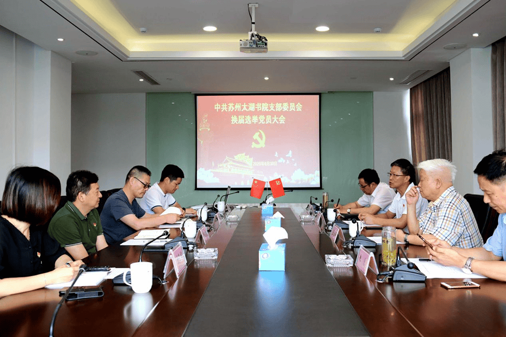 ??2020年6月30日下午,值中國共產(chǎn)黨建黨99周年的“七一”前夕之際,蘇州太湖書院黨支部在太湖書院三樓會議室舉行黨支部換屆選舉的黨員大會。蘇州太湖書院黨支部書記、太湖書院山長丘亮輝、江蘇乾寶集團副董事長太湖書院副理事長朱波,江蘇乾寶集團常務(wù)副總太湖書院副院長許建華、太湖書院執(zhí)行院長王建明、集團行政辦主任陳建飛,集團財務(wù)會計劉斌,及太湖書院辦公室主任徐曉嬌等全體黨員參加了選舉大會。蘇州市民政局副調(diào)研員、市社會組織黨委副書記楊小勇出席了本次會議,會議由陳建飛同志主持。